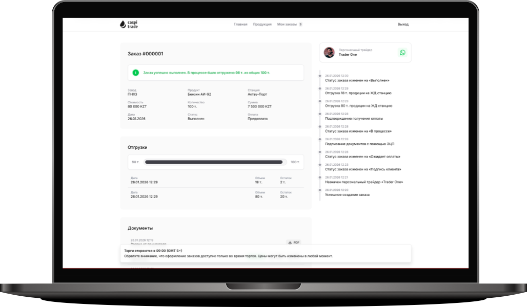 Обратите внимание, что оформление заказов доступно только во время торгов. Цены могут быть изменены в любой момент.